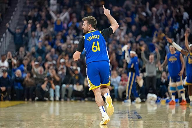 本场比赛中,勇士的先发控卫帕特-斯潘塞(Pat Spencer)的表现其实并不能令人感到非常满意,他也并没有将自己各方面的特点都发挥出来。斯潘塞全场出场28分16秒,投篮13中5,三分线外6中2,得到了12分5篮板4助攻2抢断的数据,还有2次失误和2次犯规,正负值则是低到了全场最低的-15。斯潘塞按理说是具备不错的持球进攻能力以及组织和串联能力的,他也有能力在场上起到更大的作用并且发挥出自己的进攻威胁。然而至少在本场比赛中,斯潘塞并没有得到足够的球权和战术地位作为支持,甚至很多时候都被安排担任投手,这样的角色安排显然也不能发挥出斯潘塞的能力和特点。斯潘塞在防守端的能力也是比较一般的,同样无法起到很好的效果。总体来看,斯潘塞的表现令人有些失望,他的状态其实并不差,但他确实是没有表现出自己的最佳水准,显得有些吃力了。